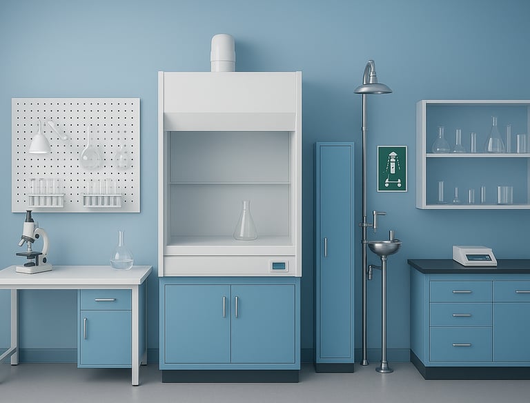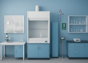 A range of essential lab setups that create an organized, safe, and functional laboratory environment include:
