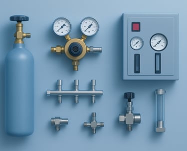 Components that manage gas distribution safely and accurately such as: